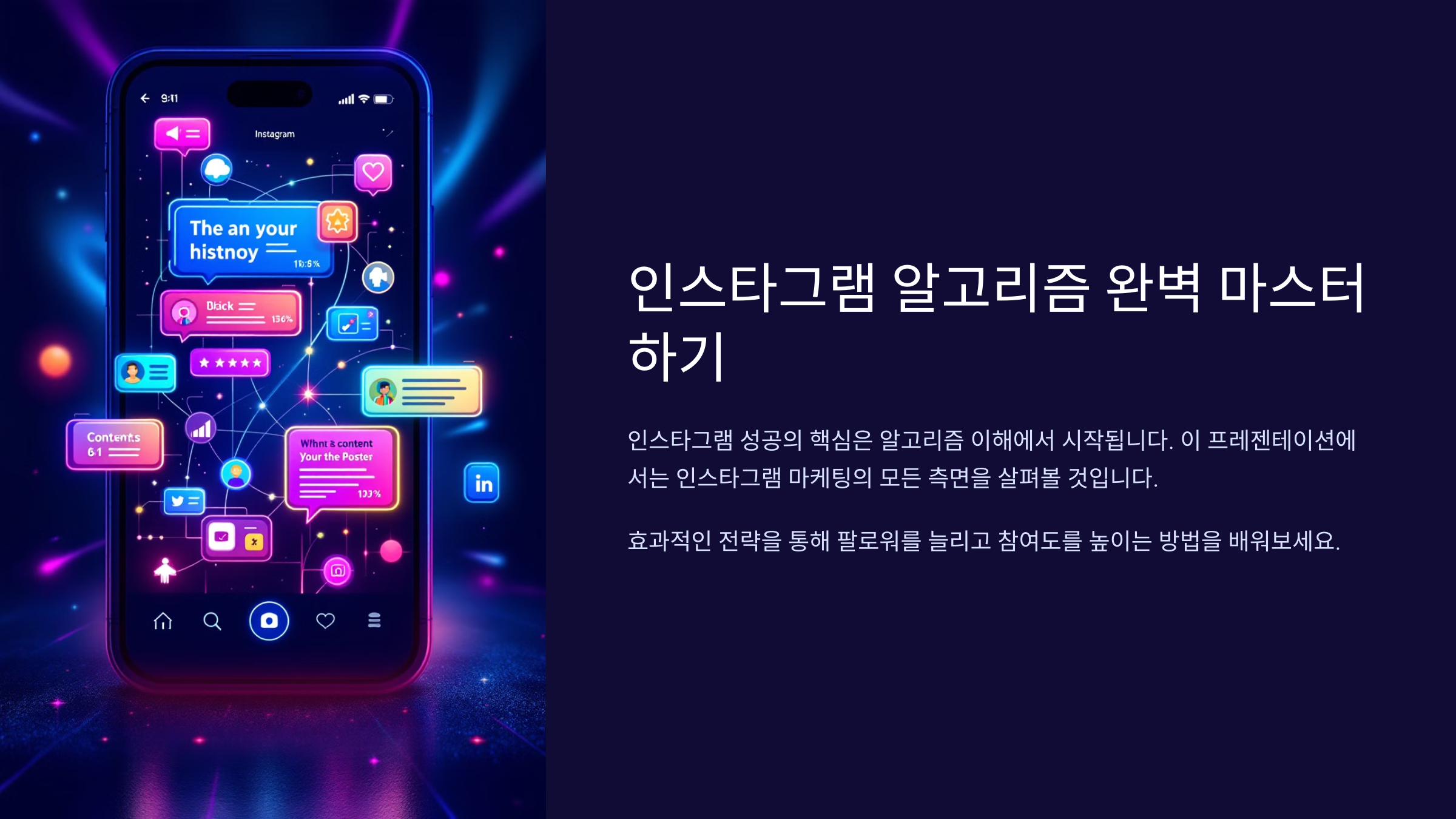 그런데 단순히 사진을 올린다고 팔로워가 늘어나는 건 아니에요. **인스타그램 알고리즘을 이해하고, 전략적인 콘텐츠 기획과 소통이 필수**랍니다. 📊